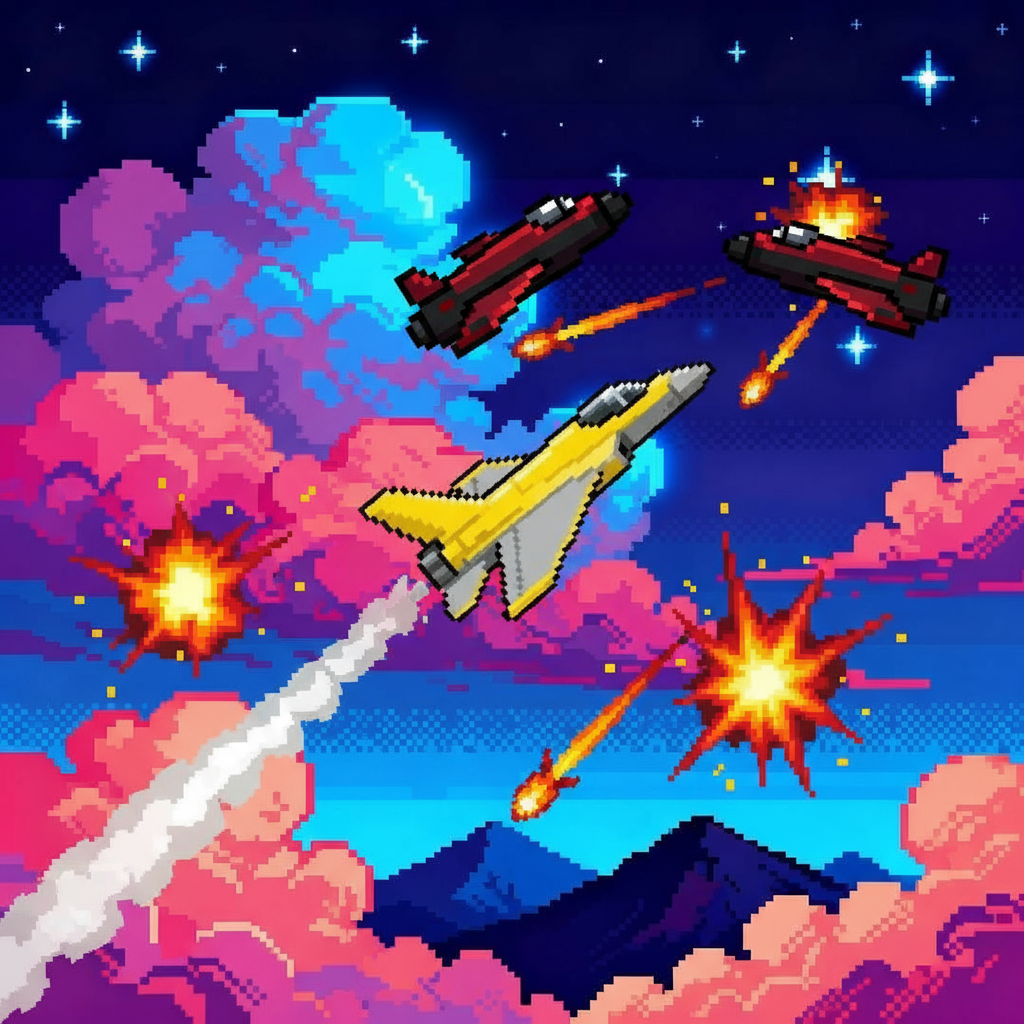 Soar through the skies in Sky Combat, the most intense arcade plane game on Google Play. Pilot your combat aircraft in a frenetic vertical shooter where every second counts. Dodge bullet hell curtains, face epic bosses with unique patterns, and beat your high score in action-packed infinite sessions.Game Features:Classic arcade aerial combat - Retro shoot 'em up mechanics combined with modern touch controls designed for mobile. Experience the essence of classic vertical shooters with polished graphics and total fluidity.Progressive and challenging difficulty - The game adapts to your skill by gradually increasing intensity. Perfect for fans of hard games and bullet hell seeking real challenges.Features:Intense aerial combat with periodic bosses that test your skill.Dynamically generated obstacles and patterns for always different matches.Intuitive touch controls and fluid response for precise movements.Camera effects and visual feedback that increase immersion without distracting.Scoring and high score system to compete with yourself or your friends.Short sessions, perfect for playing anytime.Ready to dominate the sky, survive the waves and become the best pilot? Take off and prove your skill!